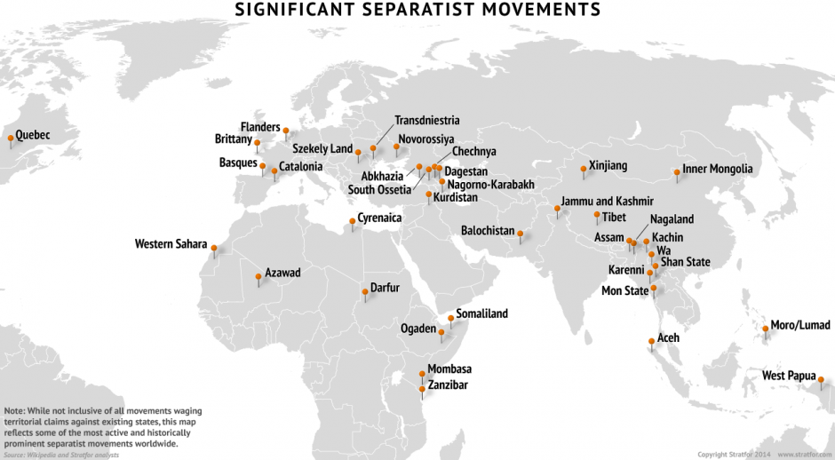 Động lực mạnh mẽ không ngừng này không chỉ diễn ra ở Trung Quốc. Cuộc trưng cầu dân ý của Scotland và làn sóng phong trào ly khai – từ vùng tự trị Catalonia ở Tây Ban Nha cho tới người Kurd ở Iraq và Thổ Nhĩ Kỳ – đều đang diễn ra theo các chiều hướng khác nhau. Hơn nửa thế kỷ sau khi Đệ nhị Thế chiến gây ra một làn sóng dân tộc chủ nghĩa hậu thuộc địa làm thay đổi bản đồ thế giới, chủ nghĩa dân tộc và các phong trào bản sắc dân tộc dưới nhiều hình thức khác nhau vốn bị chôn vùi nay đang thách thức ý tưởng hiện đại rằng sự thống nhất của các quốc gia – dân tộc là bất khả xâm phạm.