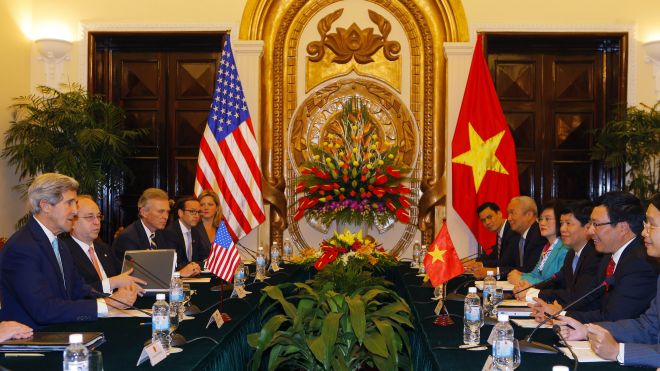 Trong khi đó, những nỗ lực của Washington nhằm thiết lập một mối quan hệ chiến lược gần gũi hơn với Hà Nội cũng khiến nước này cam kết viện trợ 18 triệu USD cho Việt Nam để mua tàu tuần tra vào năm 2013, và quyết định dỡ bỏ một phần lệnh cấm bán vũ khí sát thương cho Việt Nam vào tháng 10 năm 2014. Những khuôn khổ rộng hơn cho hợp tác chiến lược song phương cũng đã được thiết lập. Hai bên đã ký một Bản ghi nhớ về việc thúc đẩy hợp tác quốc phòng song phương năm 2011, sau đó bổ sung bằng một “Tuyên bố Tầm nhìn chung” được công bố hồi tháng 6 năm 2015. Việc tăng cường hợp tác quốc phòng với Mỹ quả thật đã khiến mối quan hệ Việt-Mỹ trở nên toàn diện hơn so với quan hệ Việt-Trung khi Hà Nội hiện nay không có sự hợp tác chiến lược và quốc phòng có ý nghĩa nào với Bắc Kinh do những tranh chấp trên Biển Đông.